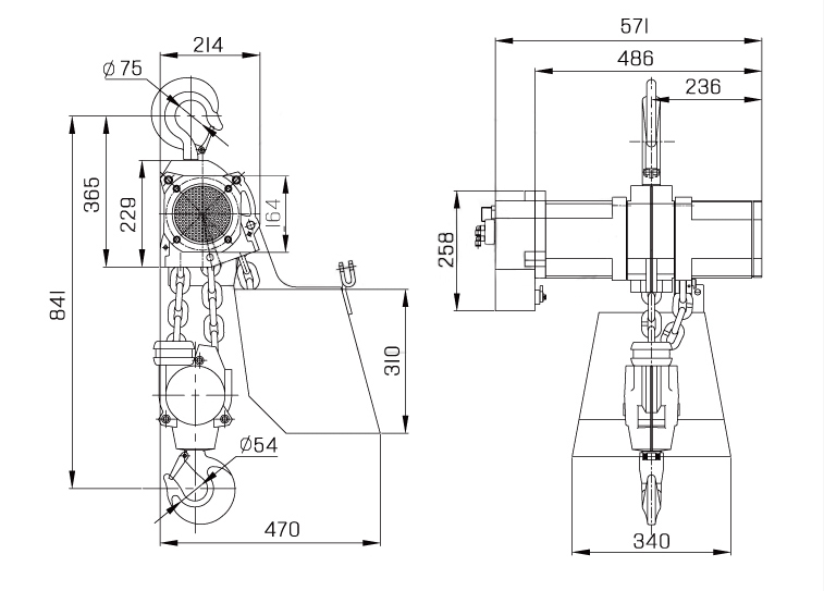Sketch of 6T Compressed Air Hoist