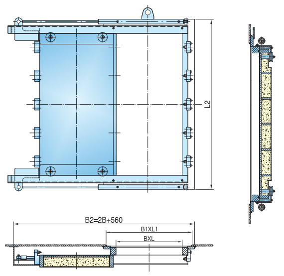 It is watertight door for bulkhead below waterline, which is usually used between engine room and boiler room, or between between engine room and steering gear room, etc. It pass fire test held by Shanghai Far East Fire Testing Center. It meets the regulations for the classification and construction of sea-going steel ships in 1987. This door can be operated manually on both sides of the engine room. Besides, it has three directional operation of hydraulic pipes. This door has functions of water tightness and fire protection.