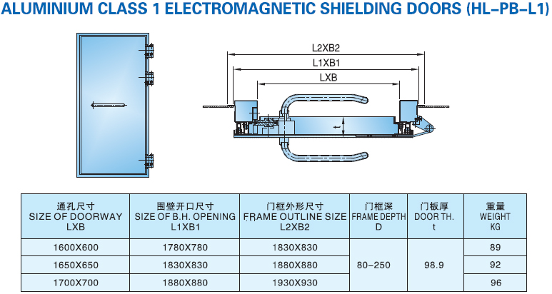 Drawing and Sizes of Aluminum EMI Shielding Door (Class 1)