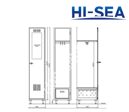 Drawing of Aluminum Marine Single Wardrobe with Drawer and Mirror