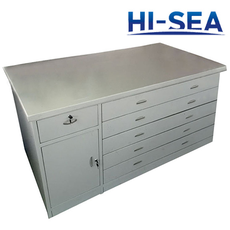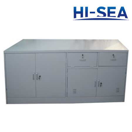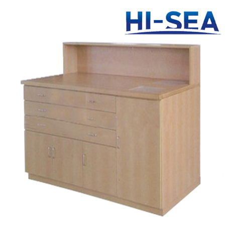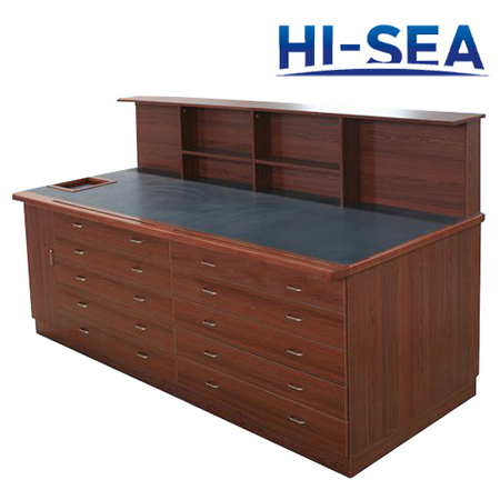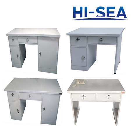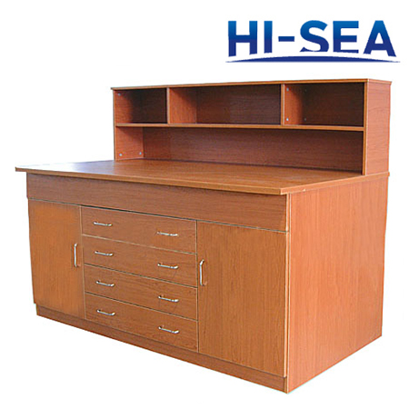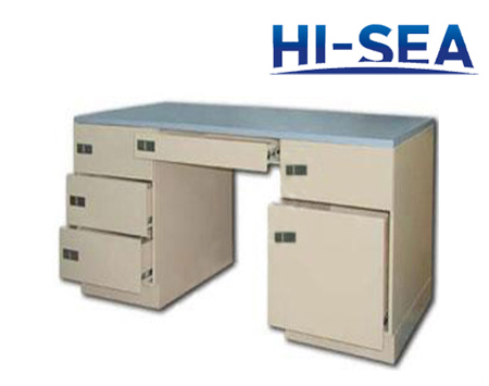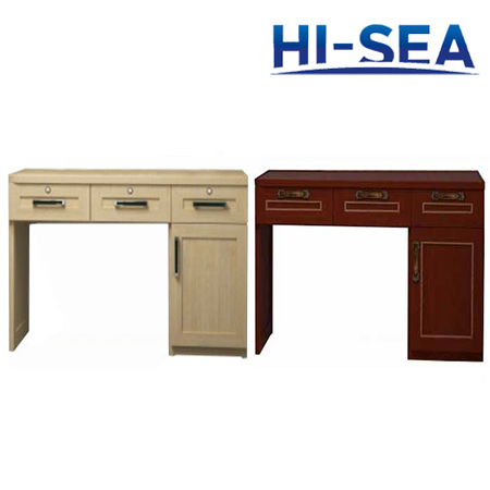 This writing table has two pedestals and drawer in the middle.Right pedestal is equipped with drawers for folders.All drawers are equipped with ˇ°push to closeˇ± lock.The table top is covered by laminate.The material of this desk is aluminum.It is quite light weight.The size can be custom made according to your cabin size.For more information,please feel free to contact us.High quality product is available for you.