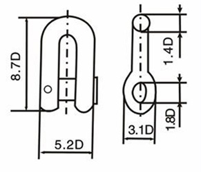 Anchor Shackle A.S, also called End Shackle E.S, is a U-shaped piece of metal secured with a clevis pin or bolt across the opening. End shackle is used to join anchor chain and anchor or the fixing eye plate in the chain locker. It is made by drop forged and hot dip galvanized.