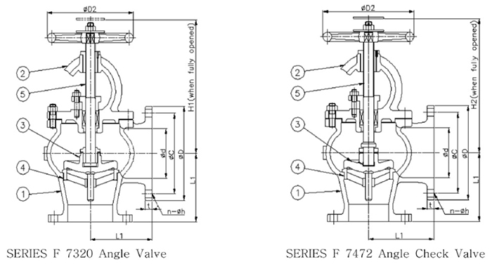 Marine Cast Iron Lift Check Angle Valve JIS F7359 5K