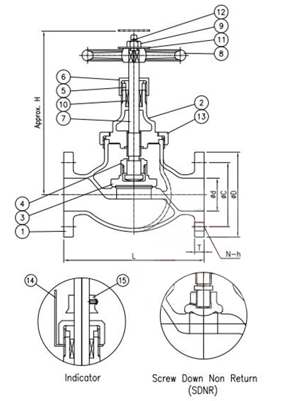 Marine Cast Steel SDNR Globe Valve JIS F7311C 5K