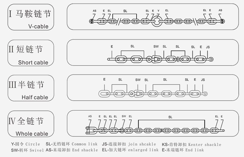 7. Components: V-cable, Short Cable, Half Cable, Whole Cable, Join Shackle, End Shackle, Swivel or Other Buoy Chain Accessories