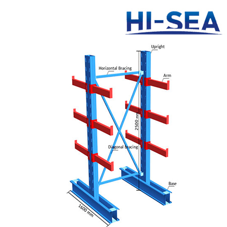 Cantilever rack consists of column pieces,cantilever arm and connecting rods.The cantilever can be single side or double sides.The cantilever column is mainly made of H beam or cold-rolled steel.The cantilever arm is mainly made of square tube,cold-rolled steel or H beam.Plug-in or bolt-type is used between cantilever and upright.Bolt type connection is used between the base and column.The base is mainly made of cold-rolled steel or H beam.The cantilever arm is mounted in the column.