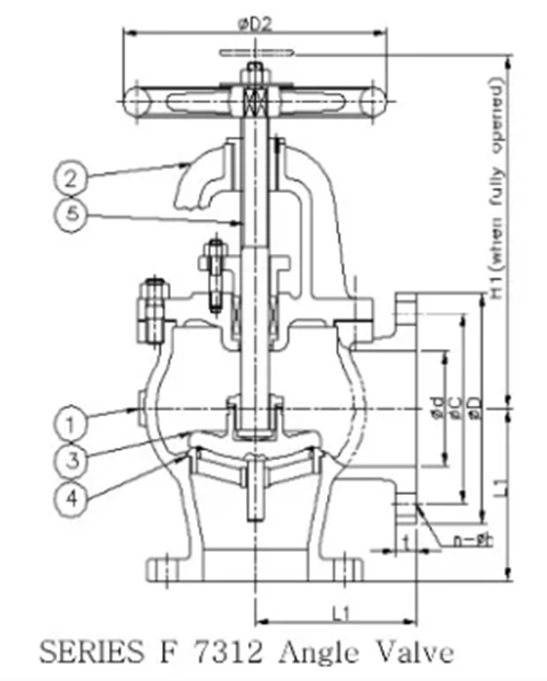 Marine Cast Ductile Iron angle valve JIS F7324(C) 16k