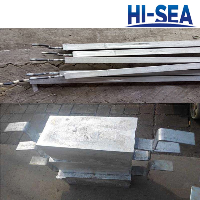 The most commonly used aluminum alloy anodes are Al-Zn-In series and Al-Zn-Hg series, applicable to the cathodic protection of ships, ports and marine facilities in seawater, sea water cooling system and reservoir deposited water site and other construction.