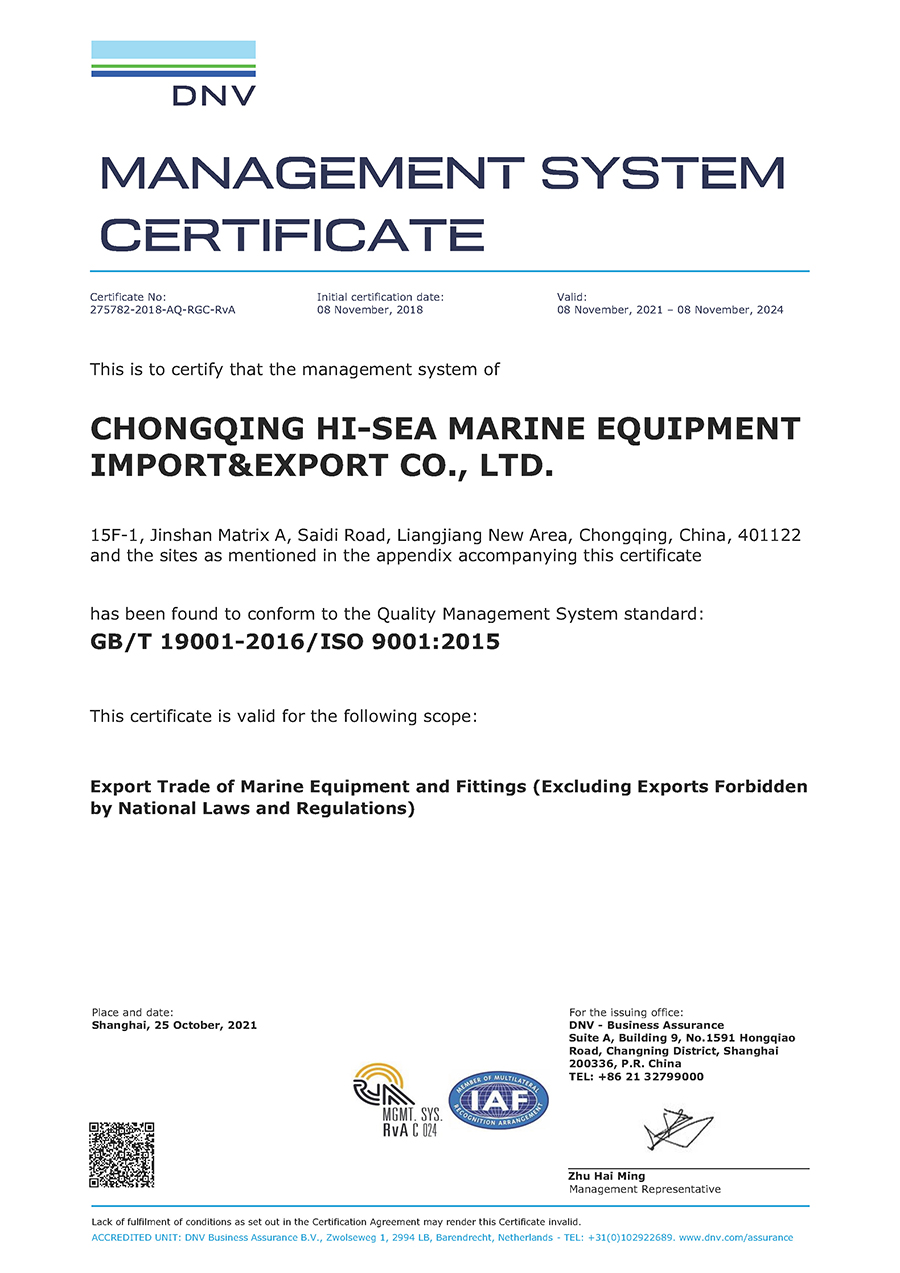 Our company is located in the largest industrial city ¨C Chongqing, China. We are the earliest professional manufacturer and exporter of marine equipment and offshore Equipment in China since 1996 year. As the subsidiarycompany of the Chongqing Hi-Sea Group, Our Group company has one forging facotory,one casting factory, Construction Material Machinery factory and one Import & Export Co.,Ltd.