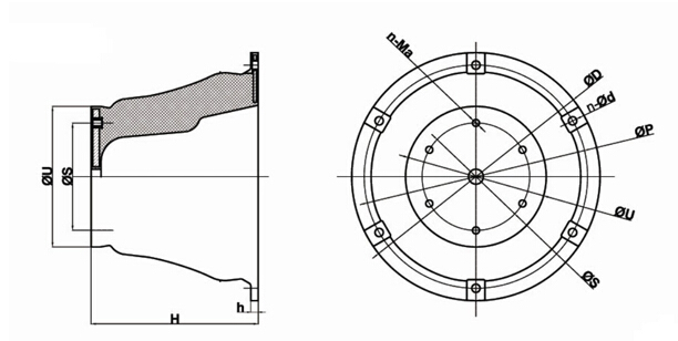| Cone Type Rubber Fender Model | H(mm) | D(mm) | U(mm) | P(mm) | S(mm) | Hole |