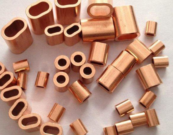 Copper wire rope ferrule is acid- resistance, alkali-resistance, salt-asistance and high-humidity-resistance. It is applicable to strongly corrosion conditions such as deep sea. Using such copper sleeve manufactured through unique processing can improve the quality of pressed wire rope products.