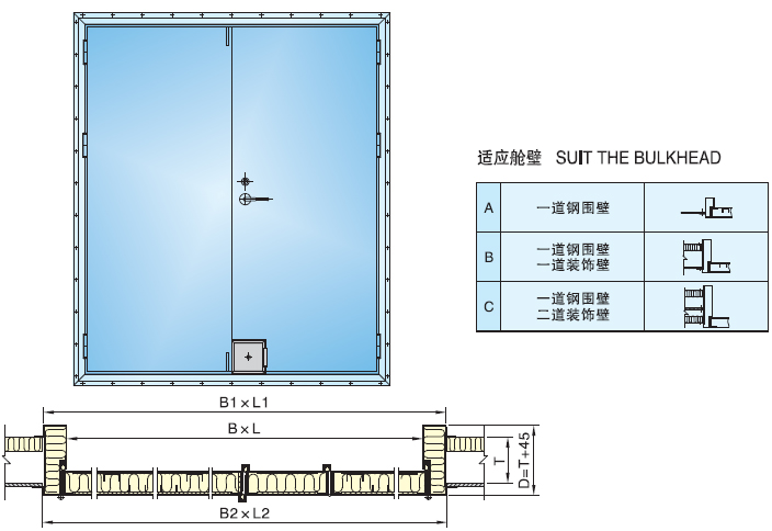 We are professional suppliers in marine fire doors. We can provide various kinds of marine double-leaf fire doors, such as H120, A60,A0, C-fire rated door... All fire doors meet the standard of CB/T 3234-2011. The following items are optional: window, vent, blowhole, E-holes. More details, please feel free to contact us. We will serve you wholeheartedly.
