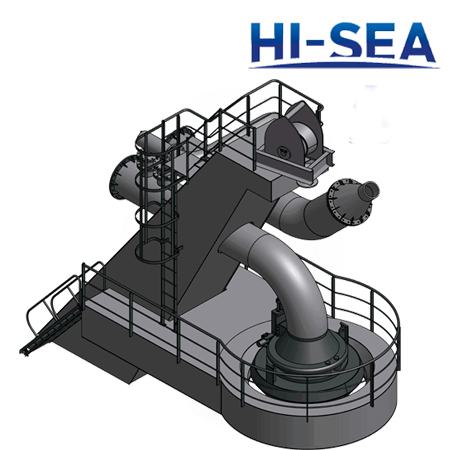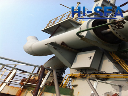 Hi-sea Dredge Bow Coupling is for TSHD.The bow coupling can be used to attach a floating pipeline to the vessel without the need for an additional vessel. The bow coupling installation mainly consists of a welded steel frame, which is mounted on the fore trestle of the ship and a hydraulic hoisting winch. The steel frame contains a hydraulically operated click-in ball joint, dredge line bend, upper roll for the hoisting wire and optionally a rainbow nozzle. The unit is equipped with an operating panel and a hydraulic control block.