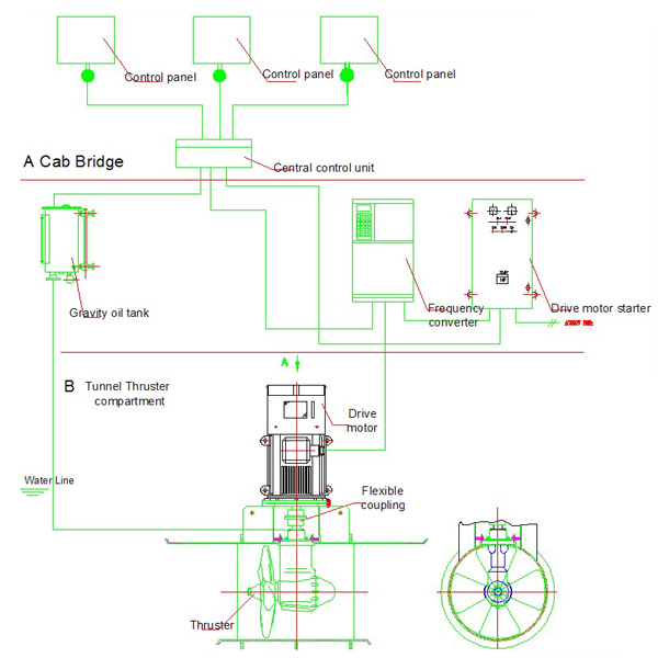 Bow thruster drive by electric motor (voltage 380V, 415V, 440V), is widely used on all kinds of vessels because it is environment friendly and has much less gas pollution discharge and higher efficiency. The electric bow thruster enables ships to dock without the assistance of tugboats and save the costs. Our bow thrusters can be designed with fixed pitch propeller or controllable pitch propeller. All of our electric bow thrusters are approved by CCS, BV, ABS, DNV, NK, KR, GL, etc. If you are interested in our products, please be free to contact us, we will answer you as soon as possible.