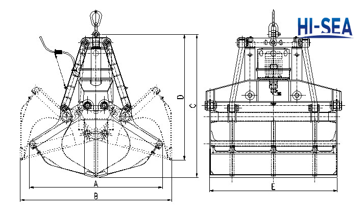 Electric hydraulic clamshell grab has hydraulic power and control system itself, and the most parts of hydraulic system are imported from European and USA. When cylinder pressure up to rated value, the pump flow will be zero and the pressure will be reduced automatically.