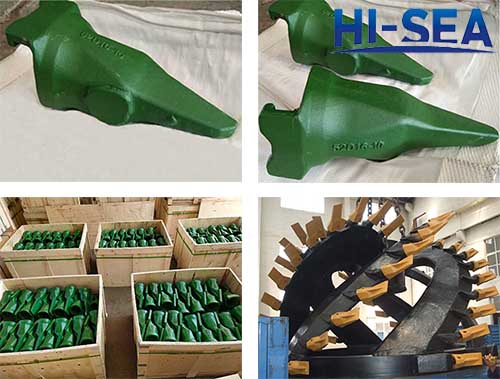 Dredge Cutter Teeth can use on various types of dredging equipment. For example, cutter heads, dredging wheels and drag heads. There are several types and different sizes of dredger teeth. The shape, material and fixation system of dredge cutter teeth, combined with their strength and reliability make a significant contribution to improving production.