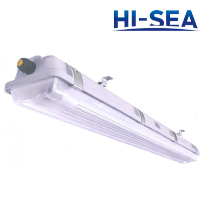 The shell of explosion-proof plastic fluorescent light is molded of SMC glass fibre reinforced polyester with benefits of high strength, impact resistance and corrosion resistance. And the lampshade is injected of polucarbonate with benefits of high light transmittance and impact resistance. The lighting fixture with emergency unit will be automatically shafted to emergency lighting status when normal power failure.