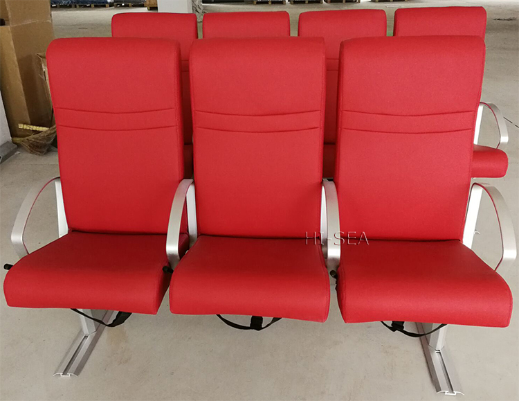 This chair is composed of aluminum frame, armrest, chair foot, beam and rail.The material of upholstery is fire retardant PVC or PU leather or fabric. Table board at the back is optional. There are different colors of seat. The backrest can be fixed or adjustable. There is a lifesaving pocket under the seat. The chair can be customized according to customers' requirements. For more information, please feel free to contact us.