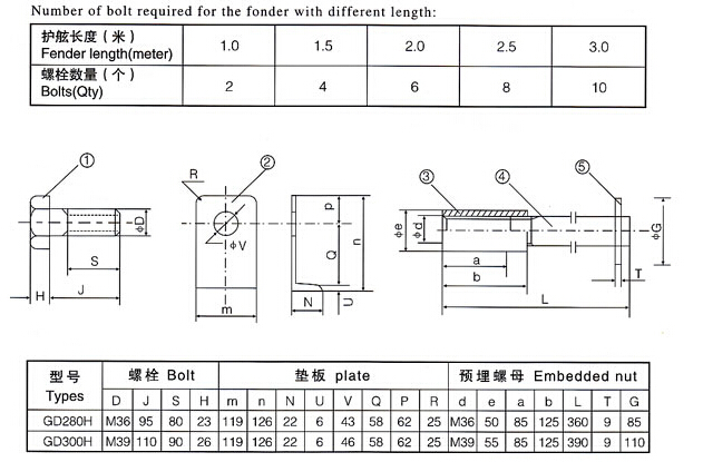 GD Type Rubber Fenders are developed on the basis of D Fenders. They can be fixed with double line anchors which greatly increase the installation stability. Furthermore, their anchoring bolt is bigger than D Fender so that the anchoring grip is double to D Fender