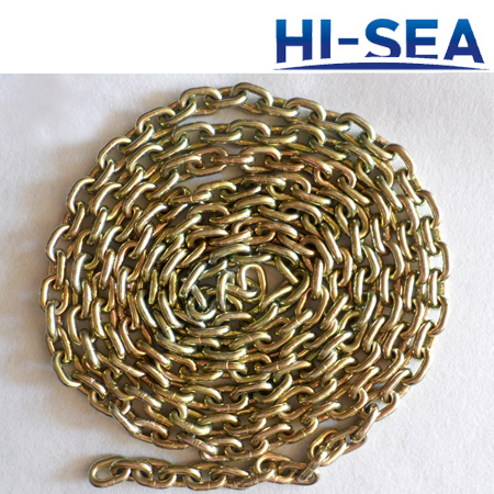 Grade 70 transport chain is a kind of welded carbon steel link chain. The chain is an improvement over high test chain. Load ratings of grade 70 chain are approximately 20% higher than grade 43. Grade 70 transport chain meets ASTM and NACM standards. The chain is most popular in the cargo industry as trailer tie downs, however the chain is not used for overhead lifting purposes.