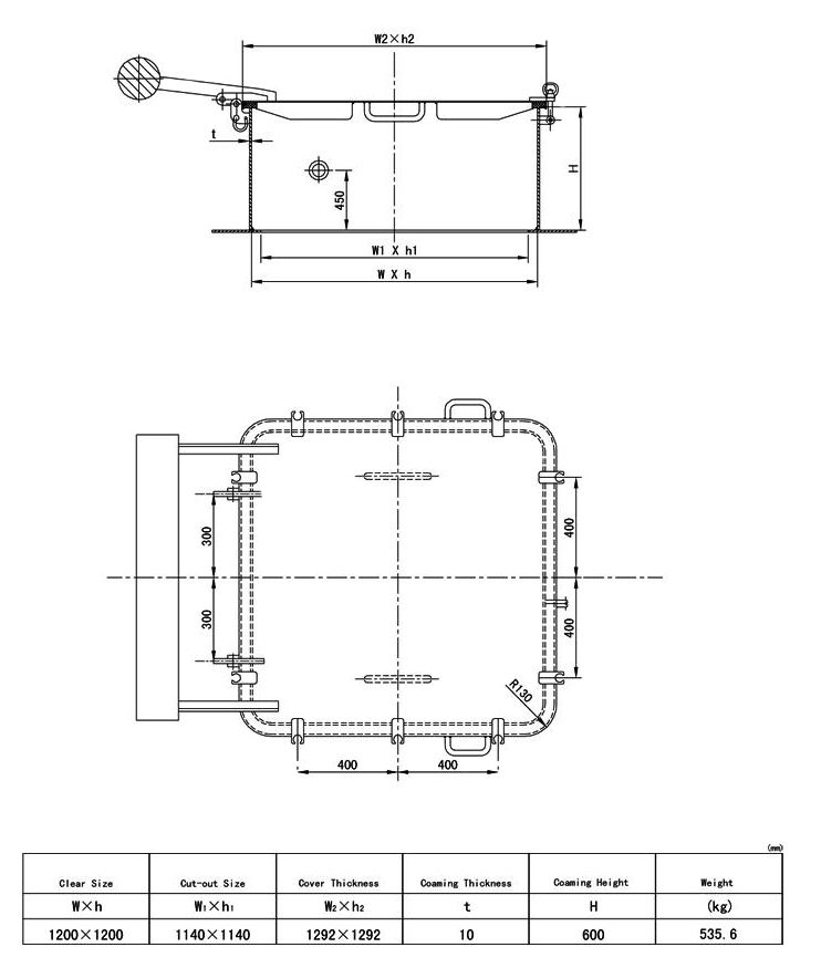 Hatch Cover for Suez Canal Light meets the standard of CB/T 3200-2013. It is used for the hatch of Suez canal light store and it is made according to ISO5778-79. This hatch cover is made of steel. We provide a full selection of cover specifications. Customization is available. Excepting this hatch cover, we also supply watertight hatch cover, quick acting hatch cover, weathertight hatch cover. Manhole covers are provided, too. If you want to know more details, please contact us.