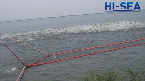 Secondly, open the valve when feeding or trapping the fishes and then the air belt set at the net of feeding area will inflate and up to float to the surface subject to the high pressure, needing about 2-6 seconds to float to the water surface.