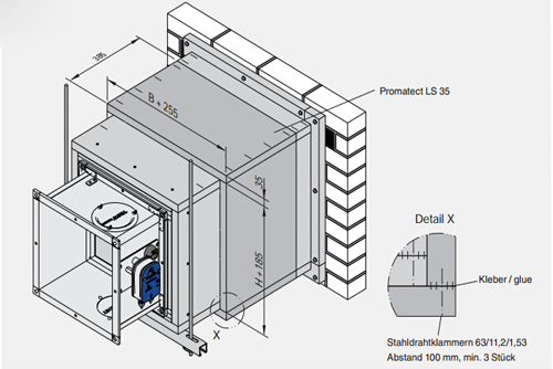 5)The type air transfer fire damper are tested to DIN4102 and EN1366-2,The local legal regulations and the licence must be complied with.