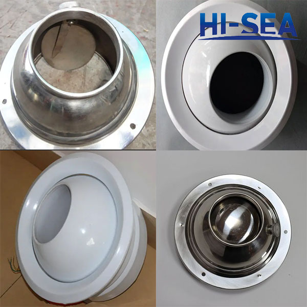 Spherical adjustable tuyair is a nozzle type air supply port, high-speed air supply in the specified direction through the valve nozzle, jet direction can be easily adjusted in the conical space of 35กใ apex Angle, the gas flow can also be adjusted by the valve opening and closing degree. It is used for high speed air supply or local cooling, such as airport waiting hall, indoor stadium, hotel kitchen and other occasions.