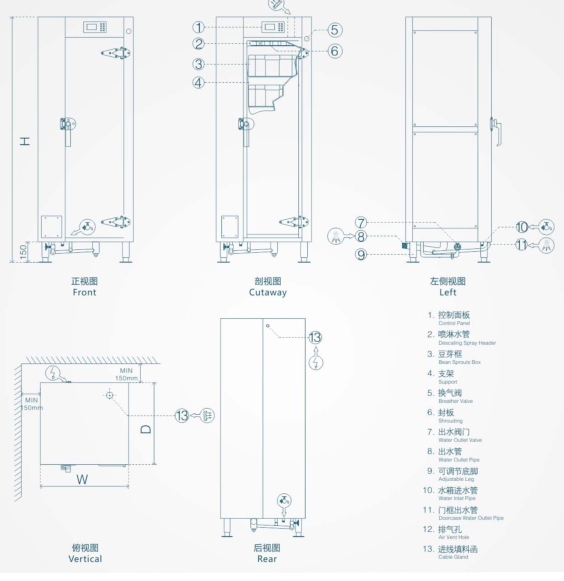 Marine Automatic Bean Sprout Machine adopts a digital computer to control the temperature and watering time. The machine is whole stainless steel construction which is anti-rust and anti-aging. It employs drawer-style production boxes which are reasonable design and user-friendly. Each production box is placed separately. This separate placement not only makes batch production available, but helps to sterilize easily. This automatic bean-sprout machine is ideal for various kinds of ships. This machine makes it available that you can eat super fresh organic bean sprouts on voyage. If you are interested in the marine automatic bean sprout machine, please contact us.