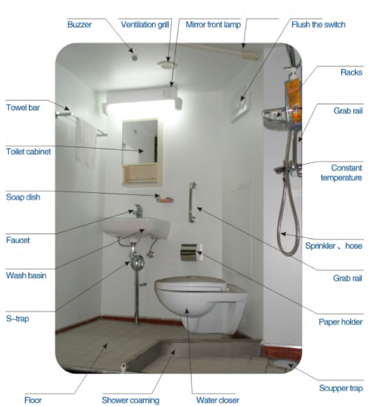 As the decorative materials for the ships,our overall bathroom unit with toilet is widely used in various cabins in the letter,such as luxury cruise ships,maritime hotel,ferries,oil platforms,cargo ships,etc.It also can be used for land-based hotels,apartments and container mobile homes,etc.High-grade design,fabrication and installation bring economical and comfortable bath health space.Its design completely conforms to the ISO standard, IMO standard, and the requirements of various Classification Societies,such as CCS,LR,GL,ABS,KR,DNV,NK,EC,etc.