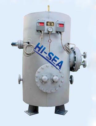 This series calorifier can be combined to use with hydrophore on board, that is to use fresh water or sea water in hydrophore to replenish this tank, and then heated by steam heating elements for usage of entire vessel.