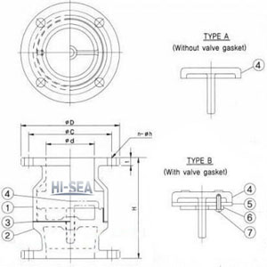 8.Drawing of Marine Cast Bronze Foot Valve JIS F3056 5k/10k: