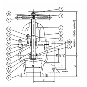 | Code | Size | L1 | Flange diam. (D) | Pitch (C) | Hole (nxd) | t | H | Weight |