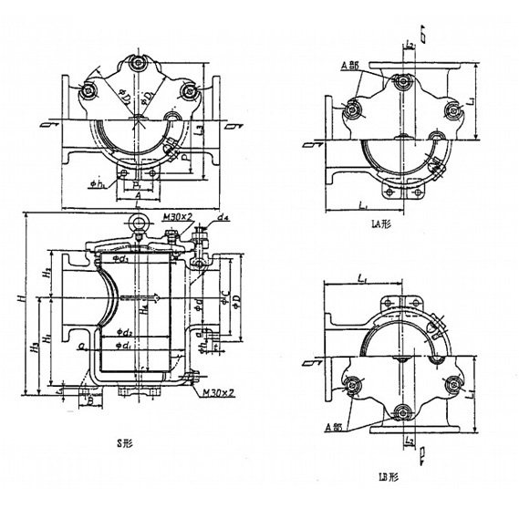 8.Drawing of Marine Cast Iron Can Water Filter JIS F7121 5K (DN125-DN400) :