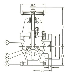10.Drawing of Marine Cast Iron Screw Down Check Angle Valve JIS F7354 5K :