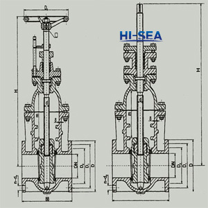 9.Fundamental dimensions of Marine Ductile Iron Flanged Oil tank Gate ValveCB/T3591994: