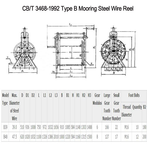 We supply CB/T3468-92 mooring steel wire reel, CB/T498-95 mooring fiber wire reel, CB*875-78 bond cable reel, CB*3048-83 motor driven mooring steel wire reel and so on.