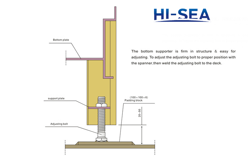 Unit in place,the ground screw control into the foot support,adjust the individual screws,so that the unit completely smooth contact with the deck,and finally to the ground screw,and the deck welding firm.