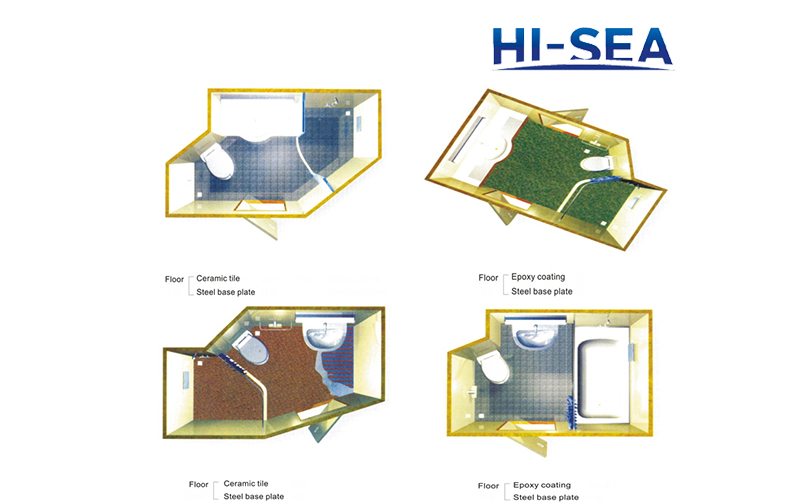 Hi-sea marine prefabricated wet unit is composed of wall panel,ceiling panel,bottom plate,hardware,sanitary ware,lighting and water and electricity system.It is an independent and multi-function unit which has the functions of washing the face,showering and WC in a limited space.