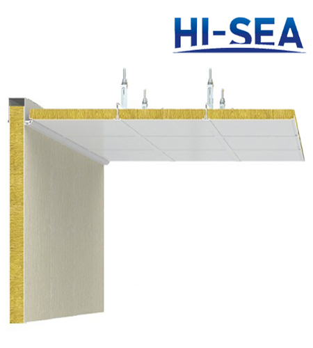 This product is the type F composite wool ceiling used in the cabin and deck house of various vessels. It is made of PVC film or galvanized steel sheet on the surface and rock wool in the core. This marine composite rock wool ceiling is fire resistant and its fire protecting rating is B-0 or B-15. It has a light weight and perfect function. It is approved by certificates CCS, BV, NK, GL, etc.