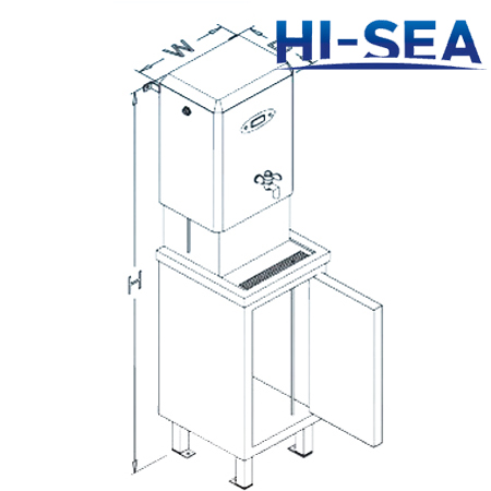 Marine Water Boiler (Floor Type) is whole stainless steel structure. It equips an automatic water refill. It has water shortage protection. There is a signal for portable water and a water temperature display. It is with a stainless steel support. The marine water boiler is floor type. There are three models with different capacity. You can choose it according to your demand. Excepting this floor type marine water boiler, we supply wall-mounted marine water boiler, too. If you are interested in our products, welcome to contact us.