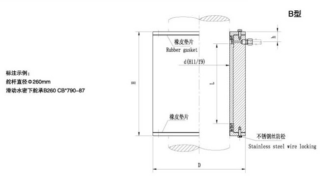 This product is marine watertight lower rudder bearing approved by CB*790-87 standard. It usually used together with roller upper rudder bearing CB*789-87 and it has good effect of sand prevention. There are two types of this kind of lower rudder bearing: type A and type B. Our products are certified by certificates such as CCS, BV, GL, LR, ABS, etc. We can offer the certificate according to customer¡¯s demand.