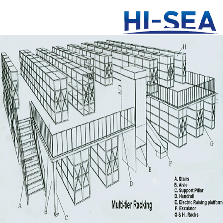 Multi-tier Racks are widely used in these cases,such as higher warehouse,small goods,maual access,large storage capacity.The middle attic is built on the racking orin the workplace in order to increase storage space.Two or three attics can be made.Goods are delivered to the second or third floors by forklift,hydraulic lifting platform or freight elevator in manual access to goods.Then goods are sent to a certain location by a light car or hydraulic pallet truck.Each bearing of mezzanines are usually less than 500kg.The floor space is usually 2.2m~2.7m.The height of the top rack is usually about 2m.It gives full consideration of the operating convenience for staff.