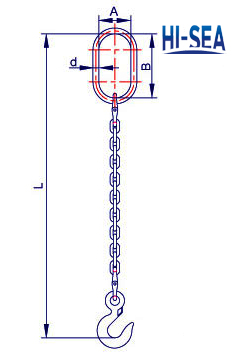 One leg chain sling is made of premium alloy steel sted with good ware-resisting quality. The outstanding advantage is resisting adrasion, resisting high temperature, resisting erodility, low elongation and without stretch when stressed. Chain in distorted, reversed and entangled state are not permitted to use.