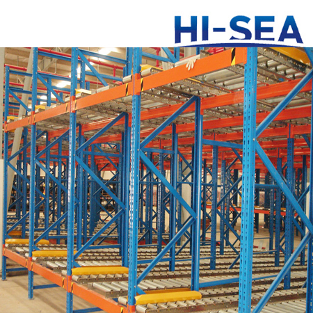 First-in first-out:Cargo is put into one end of racking and taken out from the other side.Two passages are needed without power.It is especially suitable for enterprises in the fields of food,pharmaceuticals,drinks,chemical industry,etc.