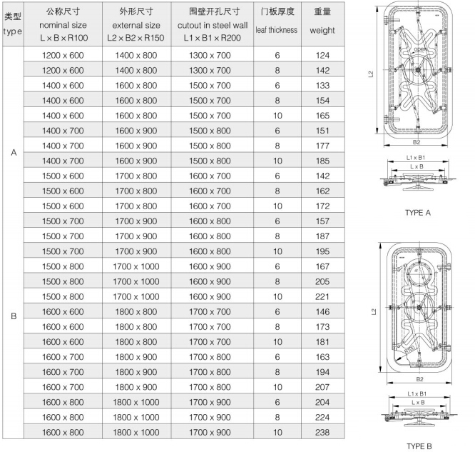Quick Action Watertight Steel Door is used for the doorway of upper structure above freeboard deck or deck house. This door meets the standard of ISO6042-1980. It can be opened and closed quickly and lightly which saves time and reduces noise. This door performs well in water tightness. The bearable pressure is no more 0.07Mpa. There are two types of quick action watertight steel door: type A and type B. This door can be customized.