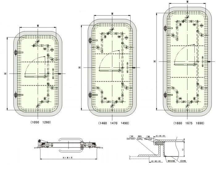 The Drawing and Sizes of Quick Open & Closing Watertight Steel Door( Type 2)
