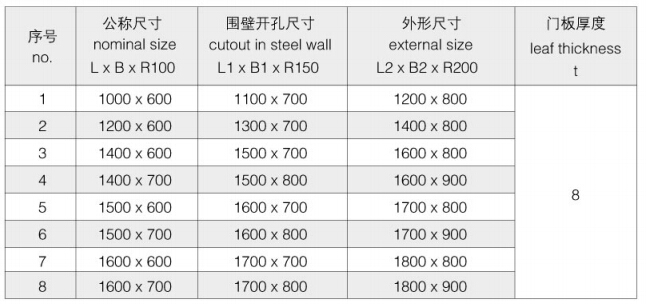 The Drawing and Sizes of Quick Open & Closing Watertight Steel Door( Type 1)
