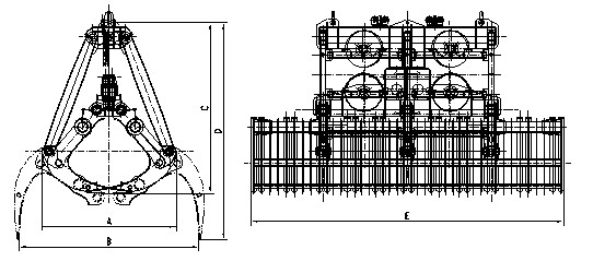 It is suitable for crane with two or four ropes to clear up waste or sundries, or used on special working site such as reservoir, gate dam, river course, freight train and so on. It has simple structure and easy to operate. This kind of grab has two scoops with teeth, which make it easy to insert into garbage and make water leak timely.
