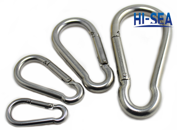 Snap hook is made by aluminum alloy, iron or stainless steel. It has a variety of shapes, such as round, oval, egg-shaped, square, triangle, etc. Aluminum alloy snap hook is widely used because of its small volume, light weight, high strength and anti-corrosion characters.